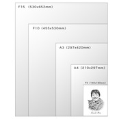 サイズは一番小さなF0(140x180mm)から、A4(210x297mm)、A3(297x420mm)、F10(455x530mm)、F15 (530x652mm)の5種類から用途に合わせて選べます。