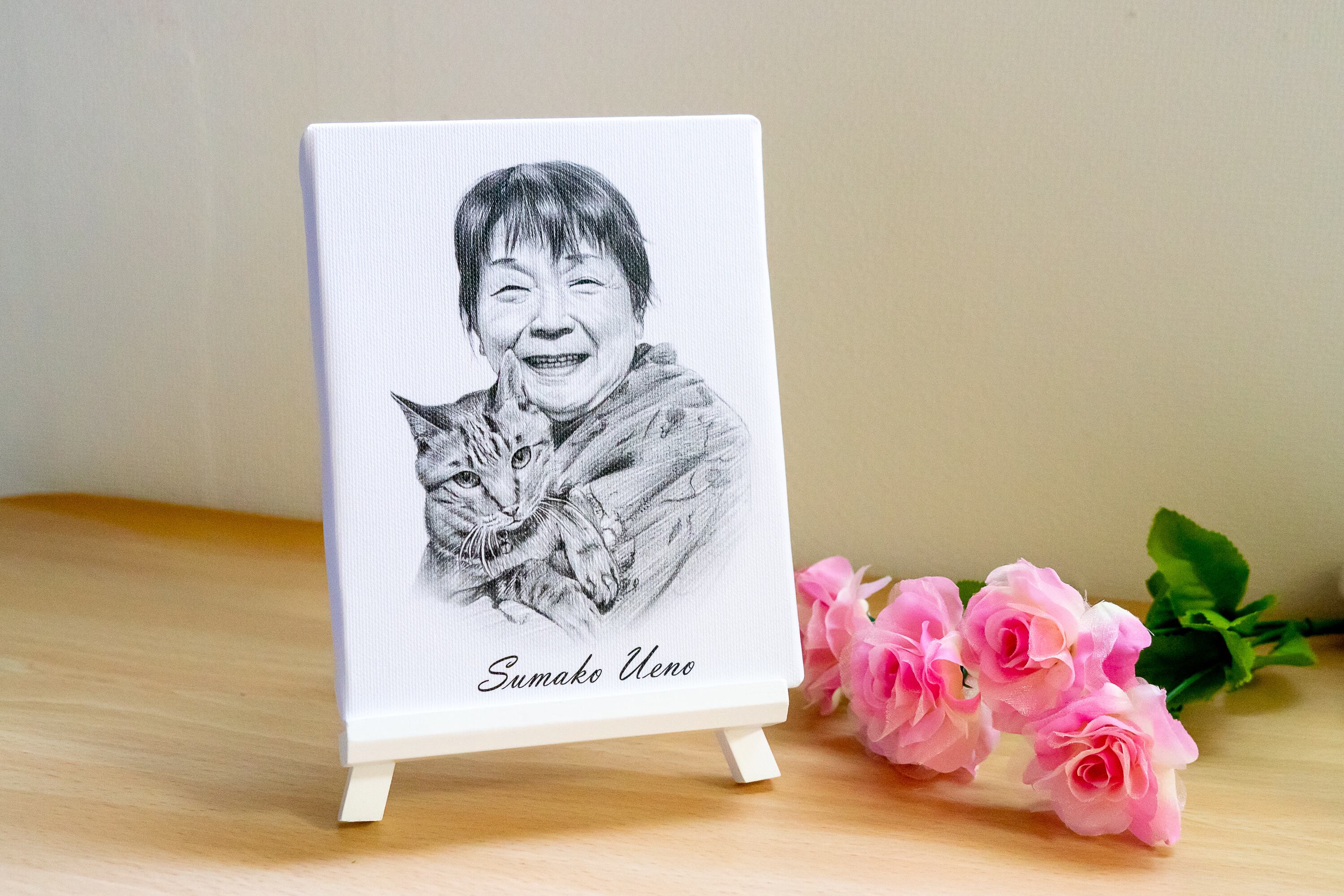 遺影写真、またはお好きな写真から、スケッチ画を作成し、キャンバス素材に印刷したアイテムです。